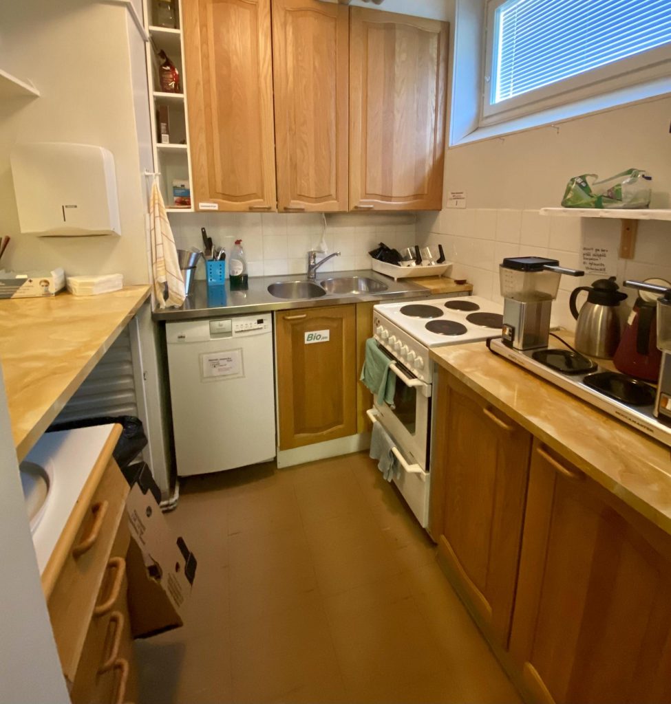 - Pienoiskeittiö sisältäen (kuva alempana): astiasto, liesi, mikro, kahvin/vedenkeitin, jääkaappi ja astianpesukone
